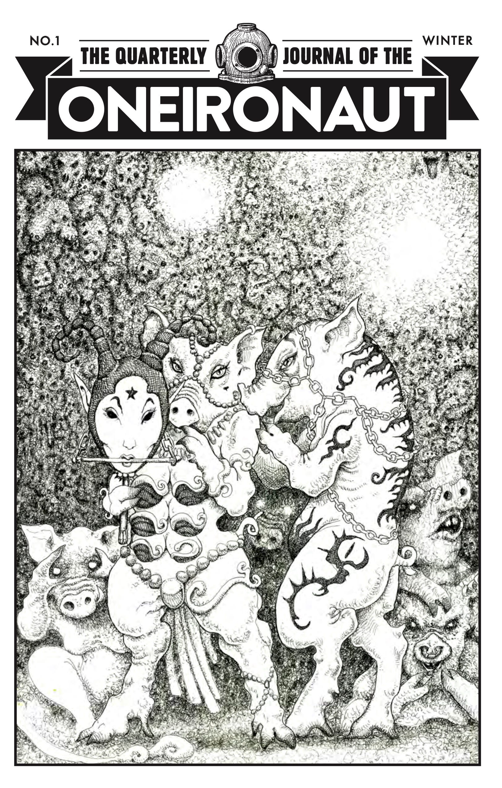 There are two pieces of big news I want to shared with you. The first is that I have launched the first installment of my new physical zine for my Patreon titled The Oneironaut. It is a zine that shares my second thoughts, items from the cutting room floor, previews of things that are ready, but won’t printed for a long time in Through Ultan’s Door. Before I say more, just look at this beautiful cover, with header and design from Lester B. Portley and the stunning illustration by longtime zine collaborator Huargo.