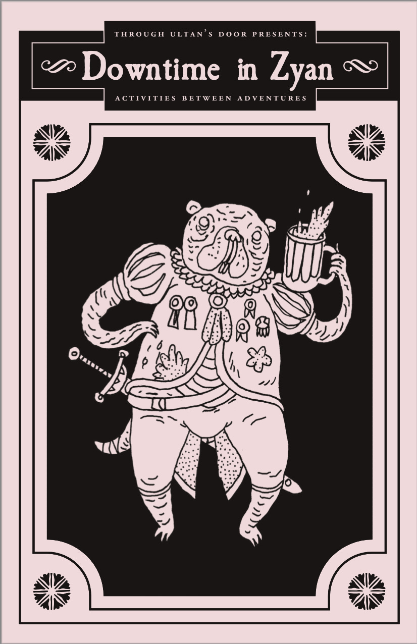 The second piece of big news is that I have reprinted, at long last, Downtime in Zyan, which I rapidly sold out of after fulfiling the Kickstarter. Downtime in Zyan presents my elegant and expansive system of downtime activities, the actions that players take in the space between adventures. It supercharges sandbox play, getting the players invested in the setting from the end of their very first adventure. From cultivating a relationship to building an institution, from crafting a splendid item to martial training, the system has it all! You can, at long last, order a copy here. I’m selling to US customers only. But I’m happy to restock any international resellers, provided you can handle the tariffs and any VAT and EU compliance issues for me. Just email me at throughultansdoorATgmailDOTcom.